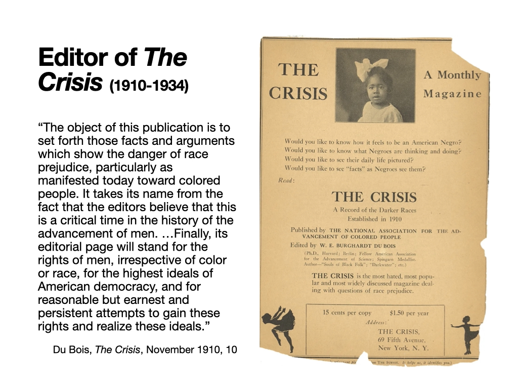 The Crisis was the official organ of the National Association for the Advancement of Coloured People. Du Bois was its editor from 1910-1934. By the early 1930s, he began to move away from the NAACP as he developed more radicalised political ideals which conflicted with the association’s more liberal and reformist approaches.